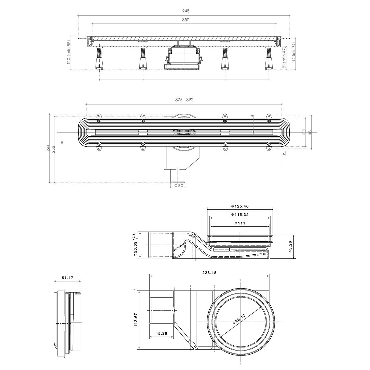 Душевой лоток BETTOSERB 13100035 Slim Line 850