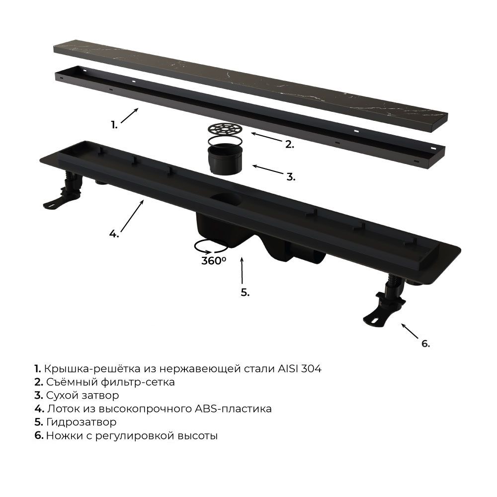 Душевой лоток RGW Drain Leo-31 60213160-04 60см под плитку чёрный купить