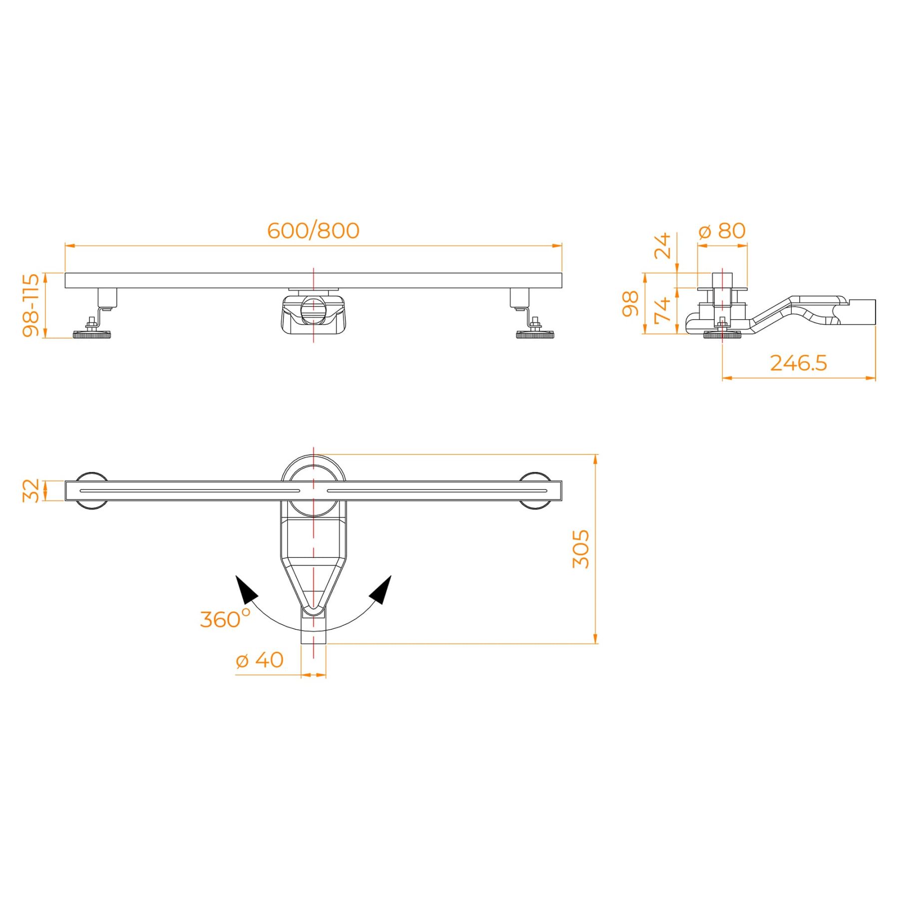 - Две усиленные опоры из нержавеющей стали с регулировкой высоты