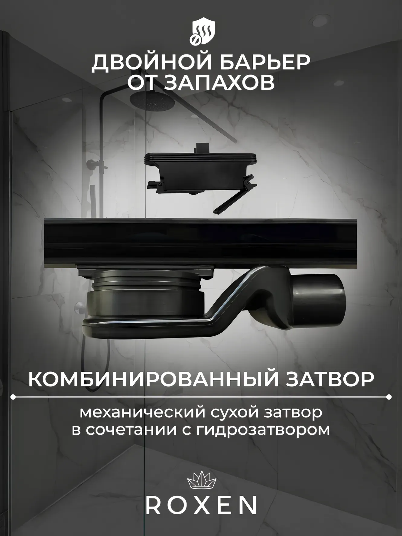 Душевой трап Roxen Slim Gun Metal - это стильное, современное решение для организации душевой зоны. Узкая видимая часть душевого лотка не бросается в глаза, делает сливную систему в полу практически незаметной, подойдет к любому интерьеру. Трап покрыт устойчивым к химическим и механическим воздействиям покрытием, которое надежно защищает изделие от коррозии и царапин. Корпус и решетка душевого лотка изготовлены из хромированной нержавеющей стали, сифон - пластиковый, обладает высоким уровнем прочности.