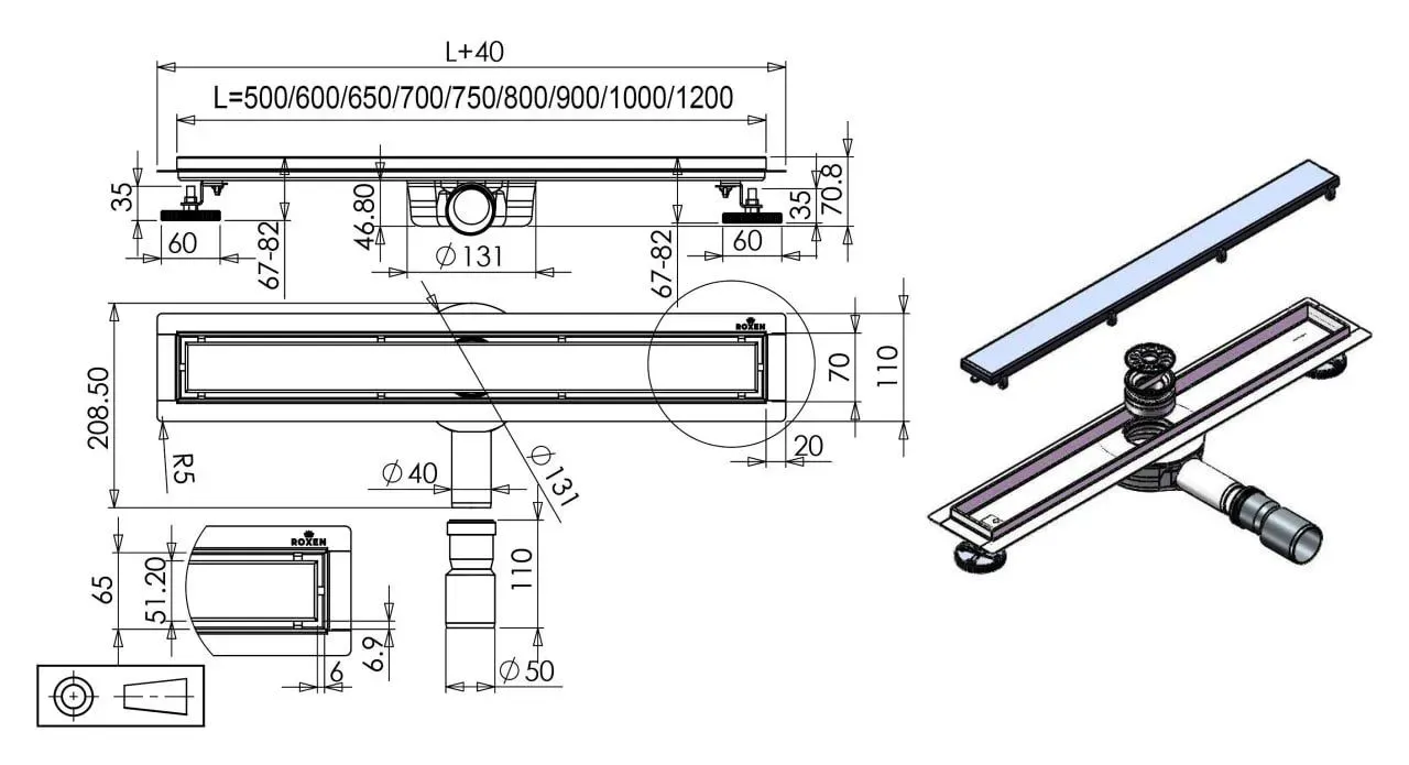 Душевой трап предназначен для установки вровень с полом. Регулируемые ножки позволяют нивелировать неровность пола и добиться идеальной плоскости при установке. Одна из важных особенностей данной модели - низкая монтажная глубина, что дает возможность установить лоток в любом месте.