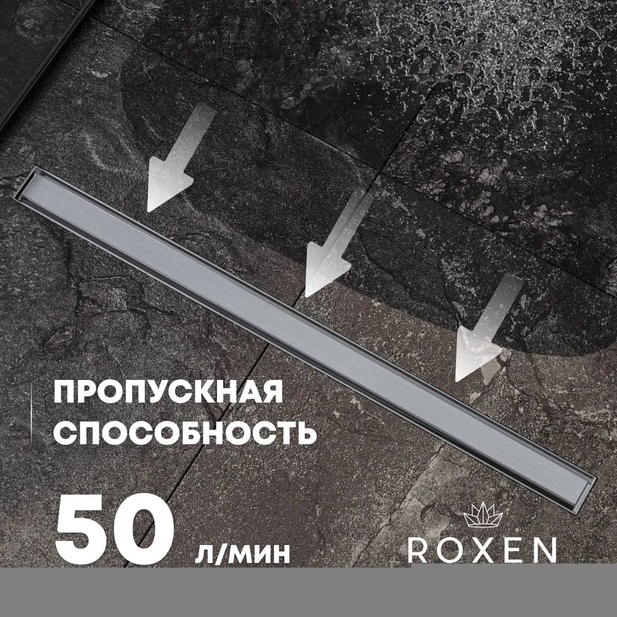 Душевой трап (линейный) Roxen Supra Black двусторонний под плитку - это практичное, стильное, современное решение для организации душевой зоны. Душевой лоток выполнен в насыщенном черном матовом цвете, покрыт дополнительным устойчивым к химическим и механическим воздействиям покрытием, которое надежно защищает изделие от коррозии и царапин. Корпус и решетка изготовлены из нержавеющей стали, сифон - пластиковый, обладает высоким уровнем прочности. Оборачиваемая декоративная решетка позволяет легко изменить дизайн душевой зоны. Одна сторона решетки предназначена под укладку плитки и делает сливное устройство практически незаметным, а вторая - из нержавеющей стали с черным покрытием с повышенной устойчивостью к коррозии и царапинам.
