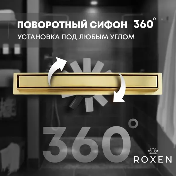 Душевой трап линейный Roxen Supra Gold двусторонний под плитку - доступен в размерах 60, 90 и 120 см. Это стильное современное решение для организации душевой зоны. Корпус и решетка душевого лотка изготовлены из нержавеющей стали AISI 304 с толщиной металла (1.2 - 1.5 мм), сифон - пластиковый, обладает высоким уровнем прочности. Оборачиваемая декоративная решетка позволяет легко изменить дизайн душевой зоны. Одна сторона решетки предназначена под укладку плитки и делает сливное устройство практически незаметным, а вторая - из хромированной нержавеющей стали с повышенной устойчивостью к коррозии.