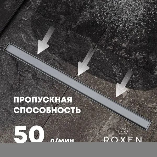 Душевой трап линейный (лоток) Roxen Supra Gun Metal двусторонний под плитку - это практичное, стильное, современное решение для организации душевой зоны. Душевой лоток выполнен в цвете "оружейная сталь", покрыт дополнительным устойчивым к химическим и механическим воздействиям покрытием, которое надежно защищает изделие от коррозии и царапин. Корпус и решетка трапа изготовлены из нержавеющей стали, сифон - пластиковый, обладает высоким уровнем прочности. Оборачиваемая декоративная решетка позволяет легко изменить дизайн душевой зоны. Одна сторона решетки предназначена под укладку плитки и делает сливное устройство практически незаметным, а вторая - из нержавеющей стали с покрытием с повышенной устойчивостью к коррозии и царапинам.