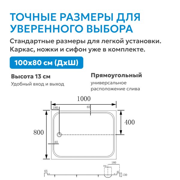 Душевой поддон ABBER AD3C108 100x80 см белый купить