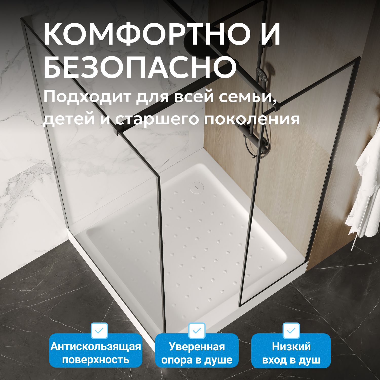 Безопасность и комфорт — антискользящий массажный рельеф