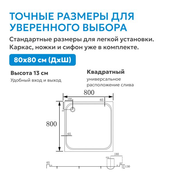 Душевой поддон ABBER AD3D080 80x80 см белый купить