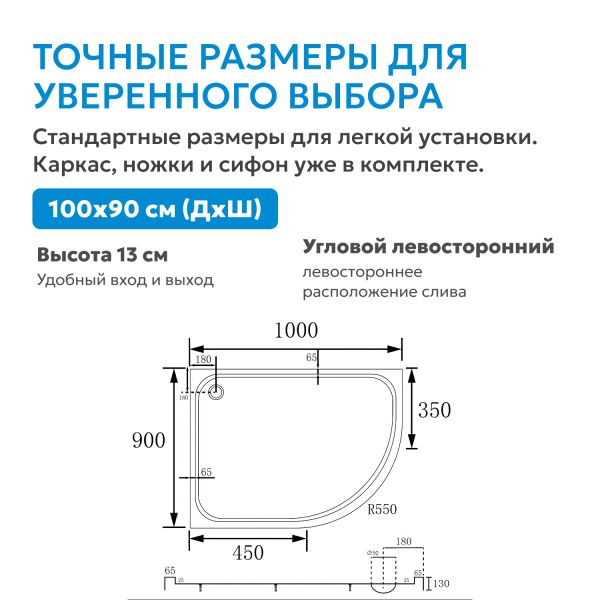 Душевой поддон ABBER AD3E109 L 100x90 см белый купить