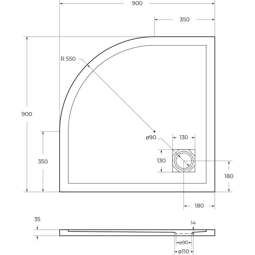 Душевой поддон BelBagno из искусственного мрамора 90x90 см TRAY-MR-UNO-R-90-550-35-W белый купить