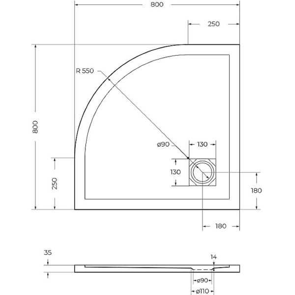 Душевой поддон BelBagno из литьевого мрамора 80x80 см TRAY-MR-UNO-R-80-550-35-W белый