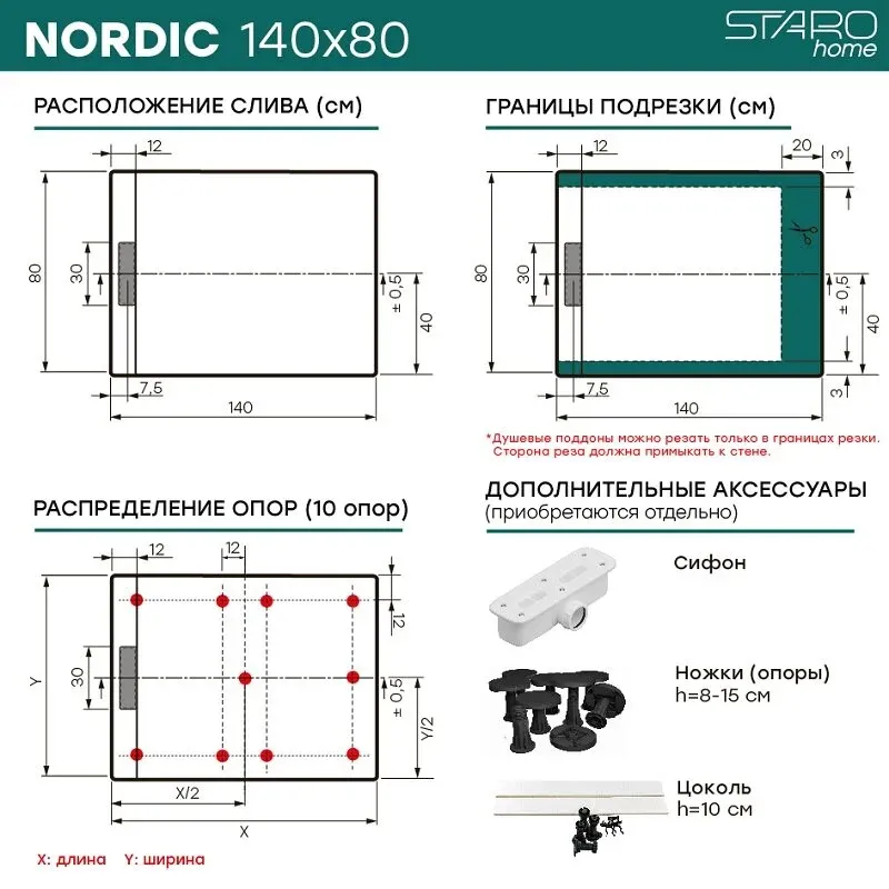 Душевой поддон Starohome NORDIC 33270397 140х80 см купить