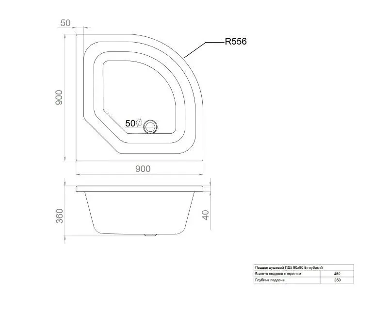 - Высота поддона 450мм
