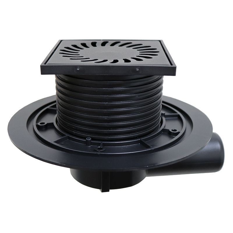 Душевой трап Azario 125х125 D50 горизонтальный слив, черный матовый