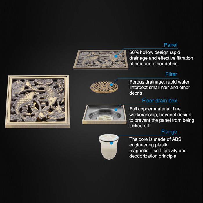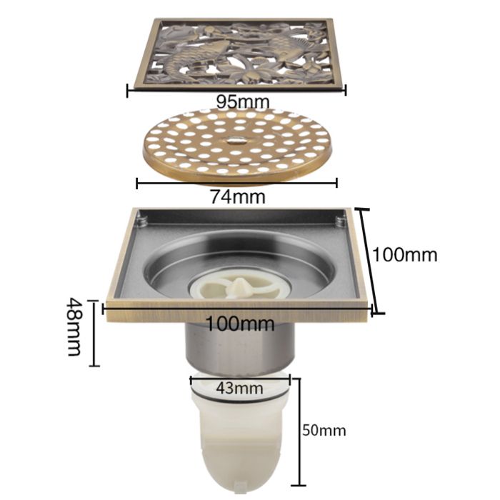 Трап для душа с вертикальным выпуском Gappo G81002-4, размер 10 * 10 см, цвет бронза, изготовлен трап из нержавеющей стали.