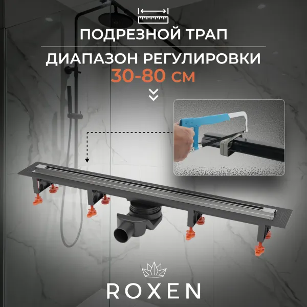 Душевой трап подрезной Roxen Razor 910100 - это стильное, современное решение для организации душевой зоны. Длина трапа регулируемая - от 30 до 80 см. Узкая видимая часть душевого трапа представлена в цвете сатин и подойдет к любому интерьеру. Трап устойчив к химическим и механическим воздействиям, надежно защищен от коррозии и царапин. Корпус и решетка душевого трапа изготовлены из нержавеющей стали, сифон - пластиковый, обладает высоким уровнем прочности. Душевой трап имеет подрезной водоотводящий желоб с возможностью обрезки.
