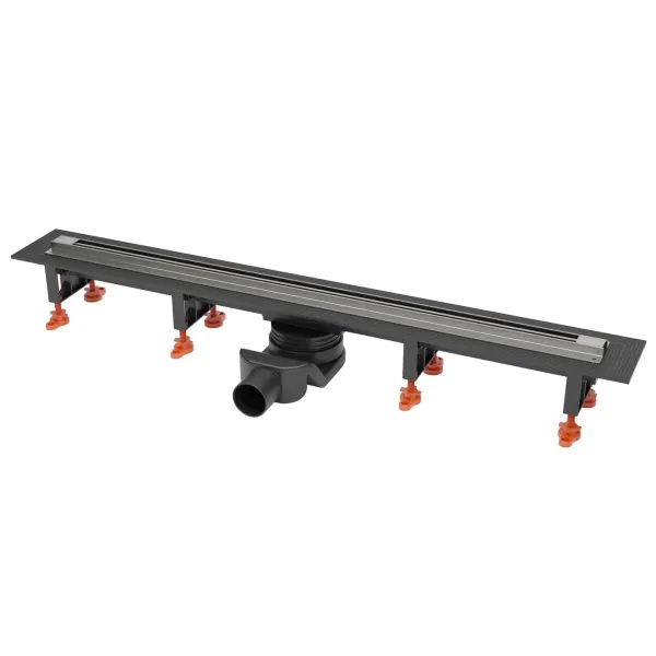 Душевой лоток предназначен для установки вровень с полом. Регулируемые ножки позволяют нивелировать неровность пола и добиться идеальной плоскости при установке. Особенностями данной модели являются низкая монтажная глубина (67-82 мм), которая дает возможность установить лоток в любом месте, а также возможность обрезки душевого трапа.