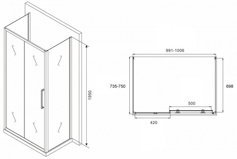 Душевой уголок ABBER Schwarzer Diamant AG30100BH-S75B-S75B 100x75см чёрный