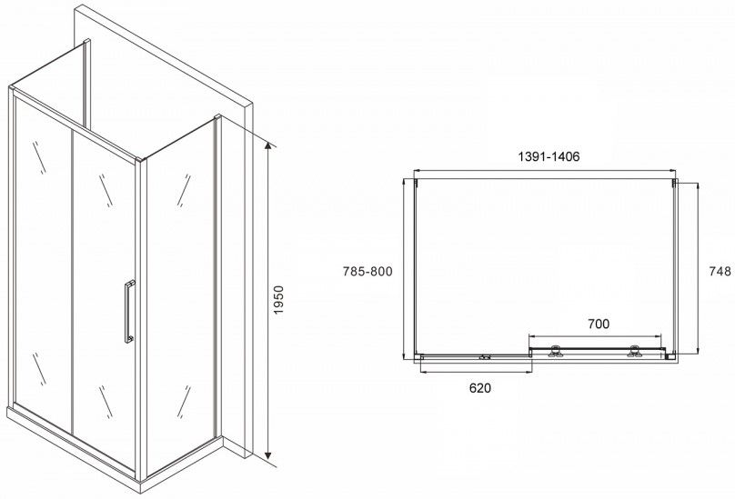 Душевой уголок ABBER Schwarzer Diamant AG30140H-S80-S80 140x80см хром