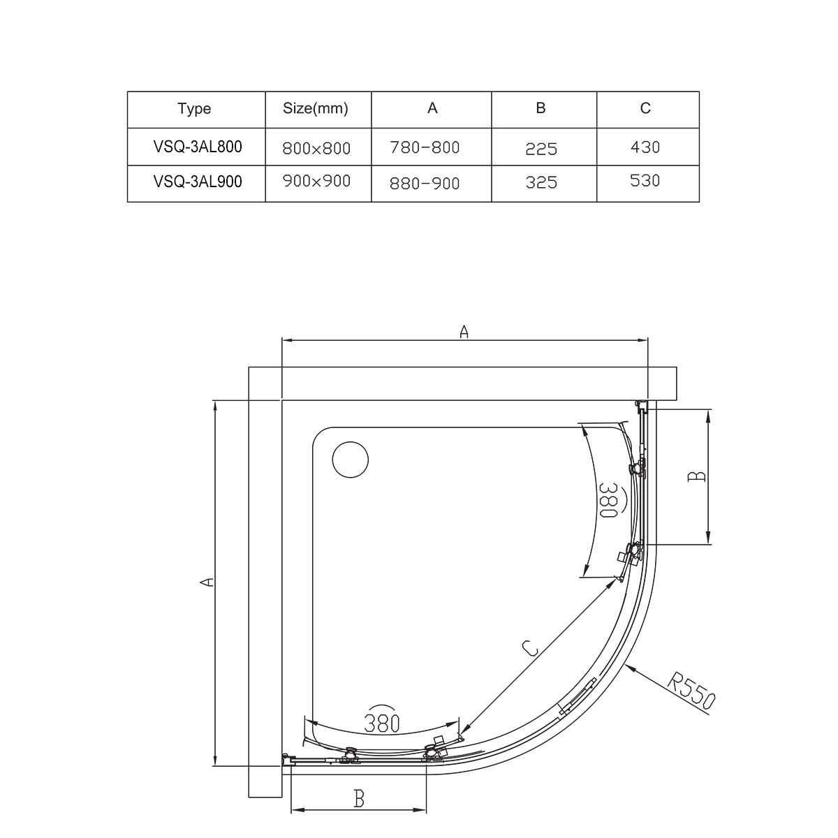 Душевой уголок Alpha VSQ-3AL900CLB, 900*900, черный, стекло прозрачное