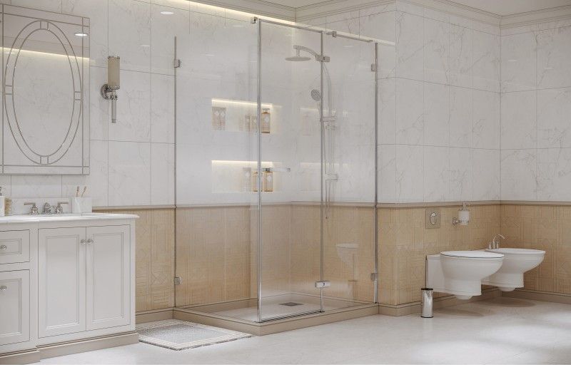 «Утопленные» в стекло петли с внутренней стороны ограждения значительно облегчают уход за душевым уголком.
