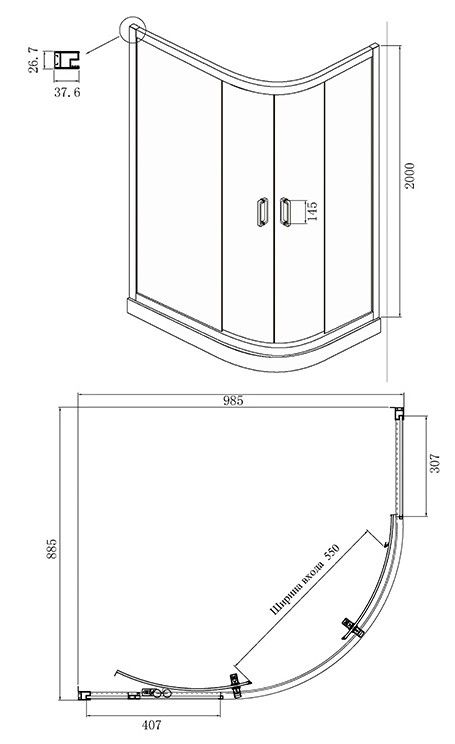 - Монтаж: на пол со встроенным душевым каналом или трапом, на поддон