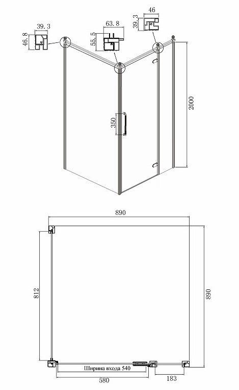 - Размеры (ШхВхД): 890x2000х890 мм.