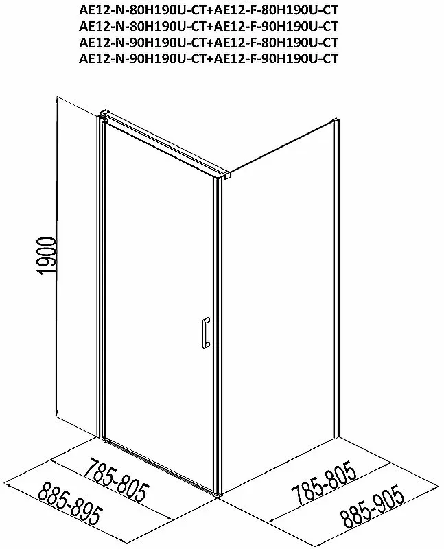 Душевой уголок Aquanet Cinetic AE12-N-80H190U-CT + AE12-F-80H190U-CT 254230 80x80 см стекло прозрачное профиль хром купить