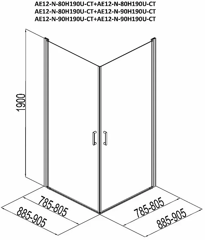 Душевой уголок Aquanet Cinetic AE12-N-90H190U-CT-2 254236 90x90 см стекло прозрачное профиль хром