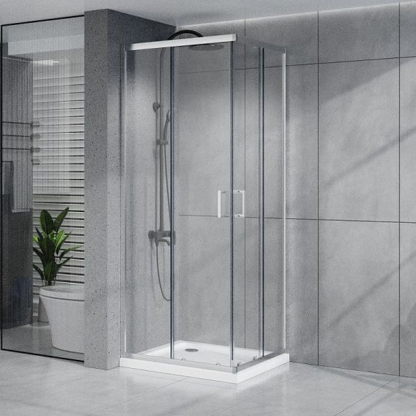 Квадратный душевой уголок, с двумя раздвижными дверьми,