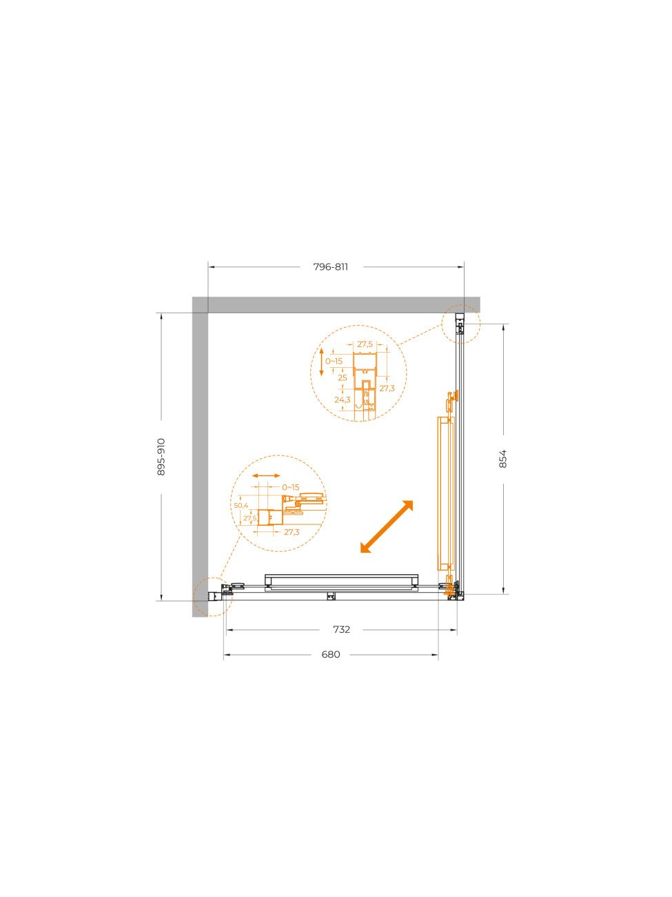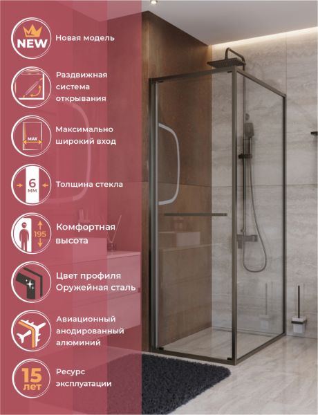 Душевой уголок CEZARES LUX-AH-FS-1-80/90-C-GM оружейная сталь