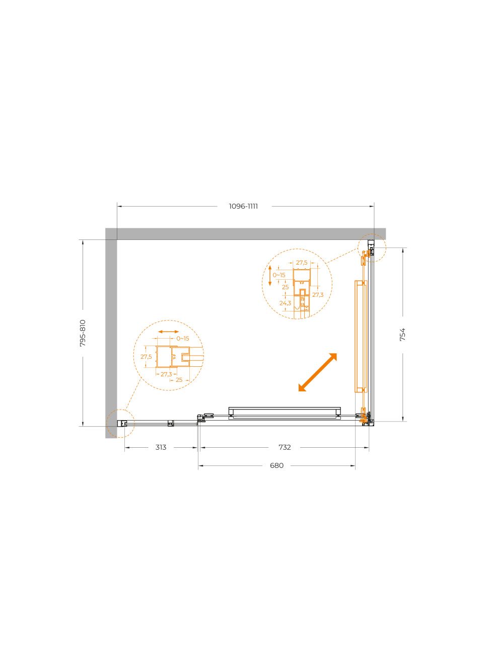 Душевой уголок CEZARES LUX-AH-FS-11-110/80-C-CR