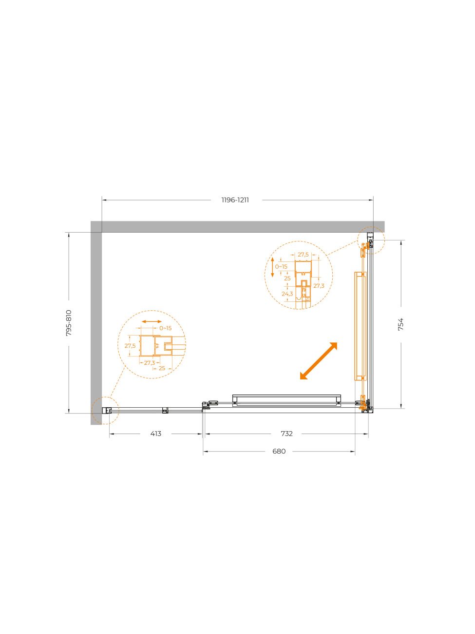 Душевой уголок CEZARES LUX-AH-FS-11-120/80-C-GM оружейная сталь