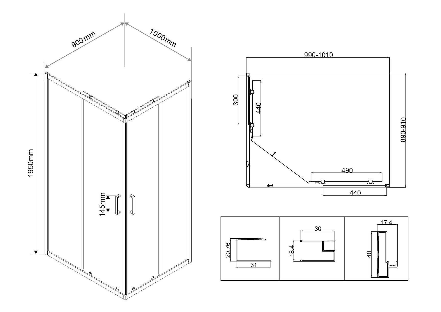 Душевой уголок City VSS-5CT9010CLB, 1000*900, черный, стекло прозрачное