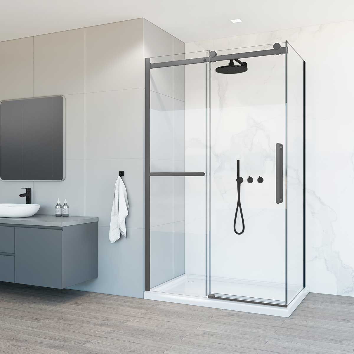 Душевой уголок Como Soft VSR-1CS9013CLGM, 1300*900, вороненая сталь, стекло прозрачное купить