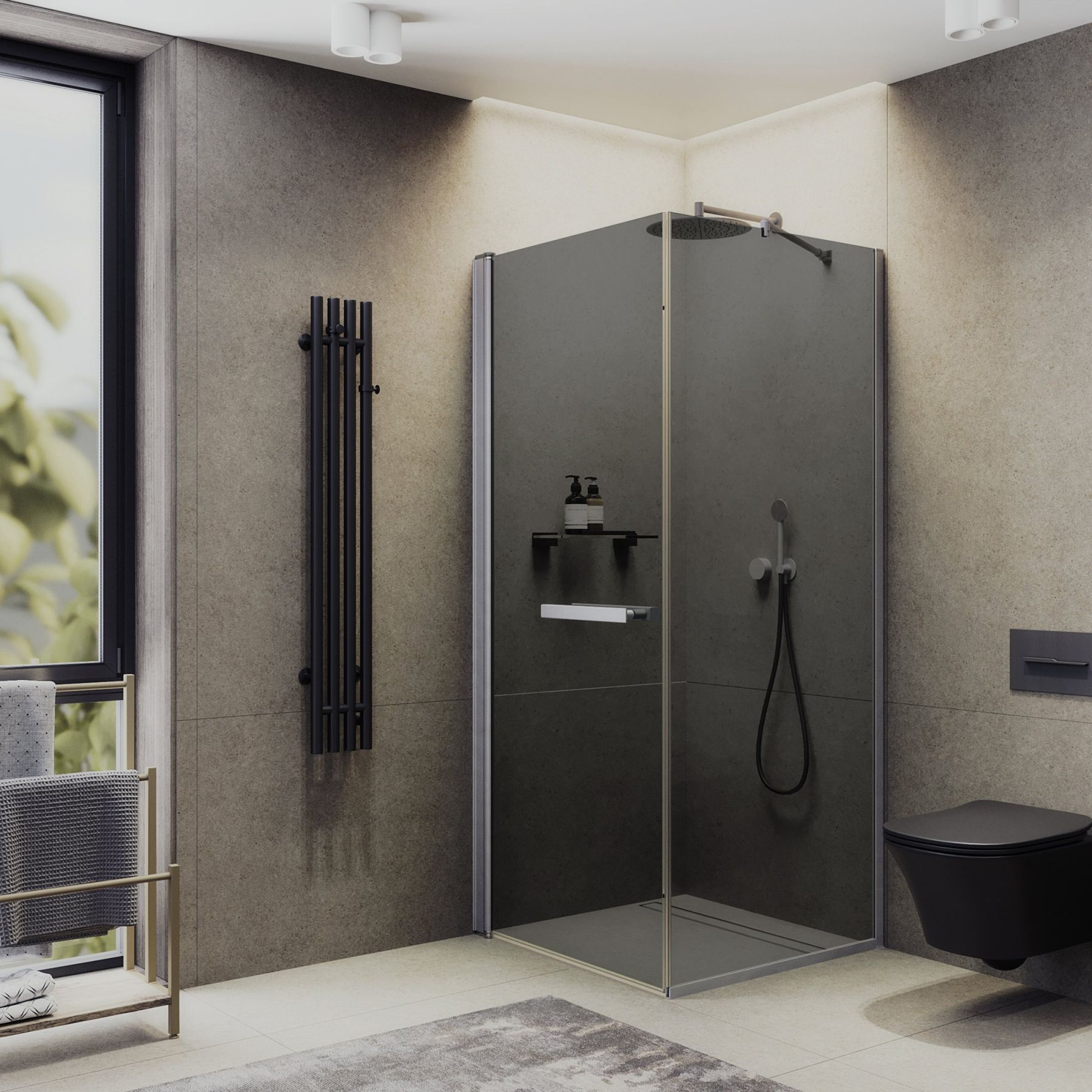 Душевой уголок MaybahGlass MGY-1348-5 100x100см хром матовый/графит