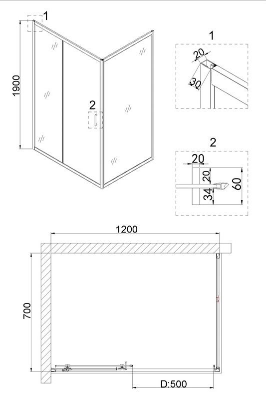 Душевой уголок Niagara NG-62-12A-A70 120x70см хром/прозрачное купить