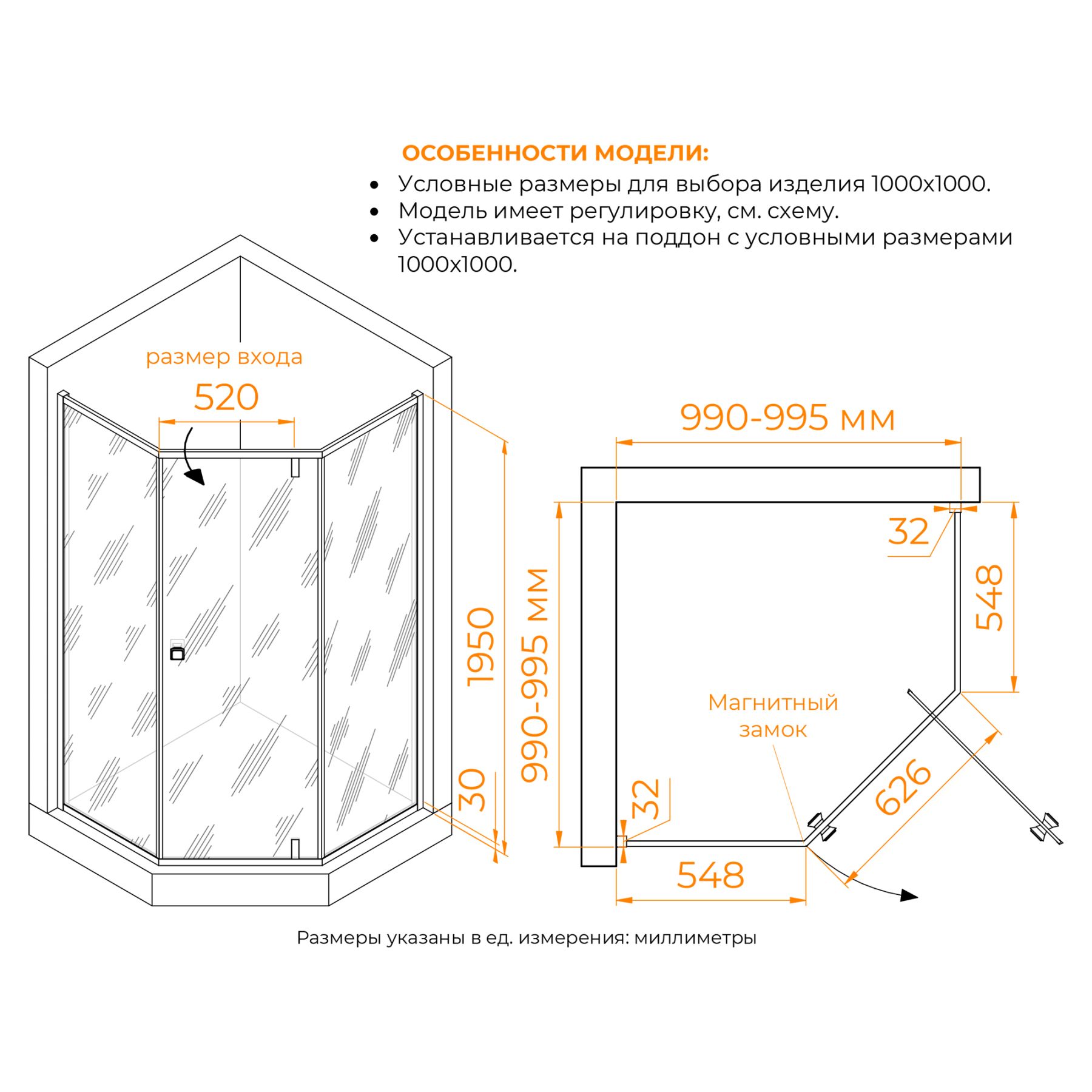 Душевой уголок RGW HO-088 350608800-21 100x100 см хром купить