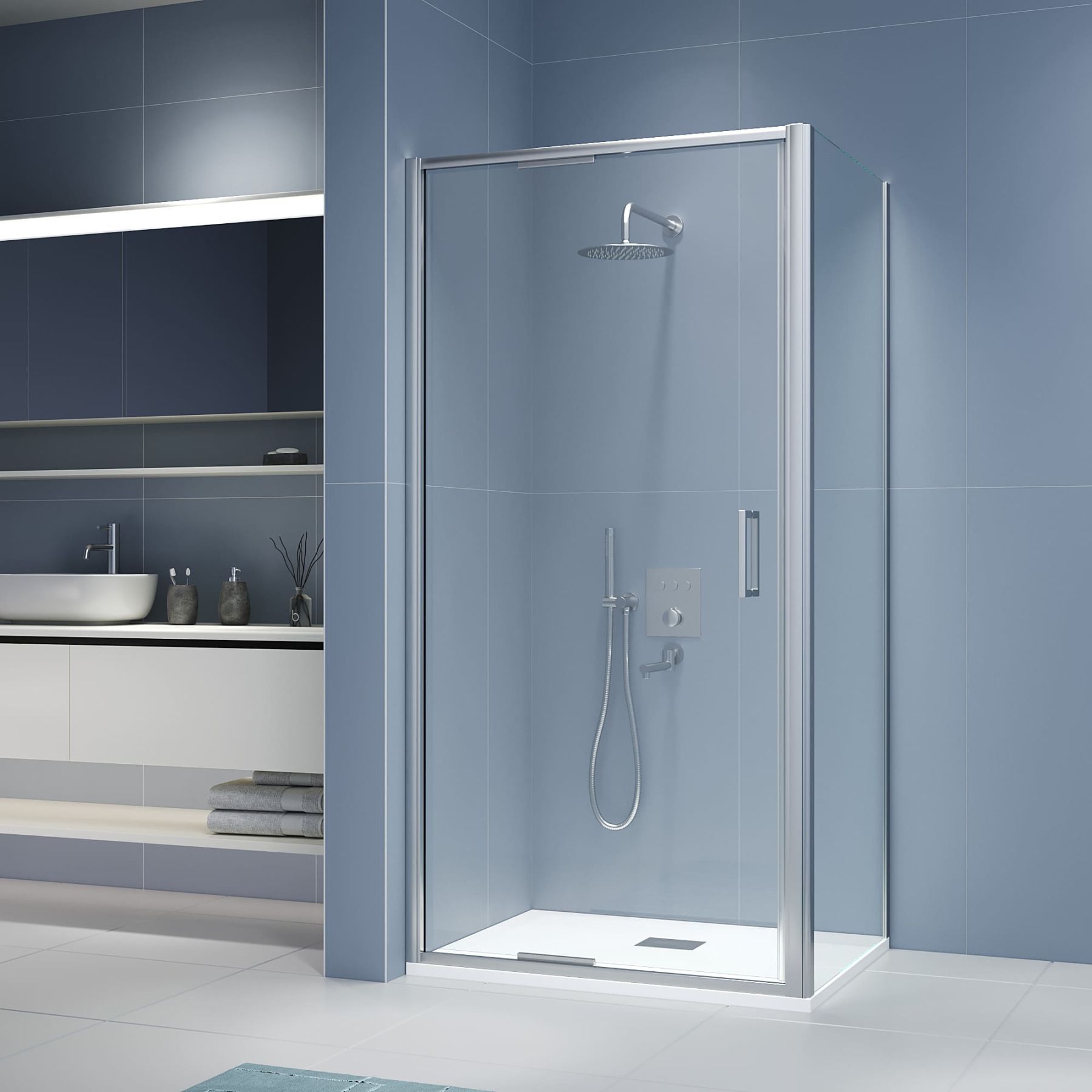 Душевая дверь для ниши роторная при установке образует квадратную либо прямоугольную душевую зону.