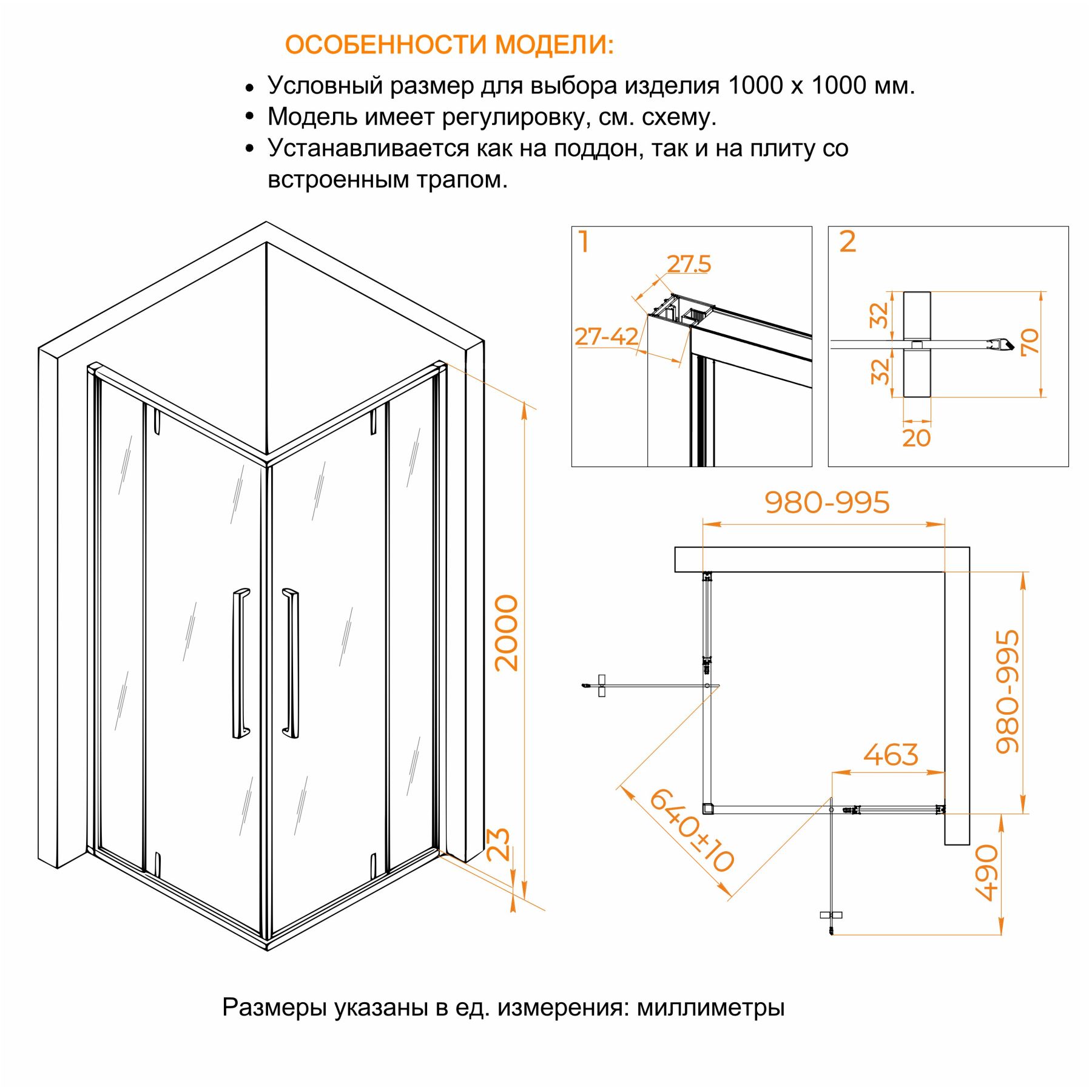 Размеры: 1000х1000 мм с диапазоном регулировки (980-995)*(980-995)