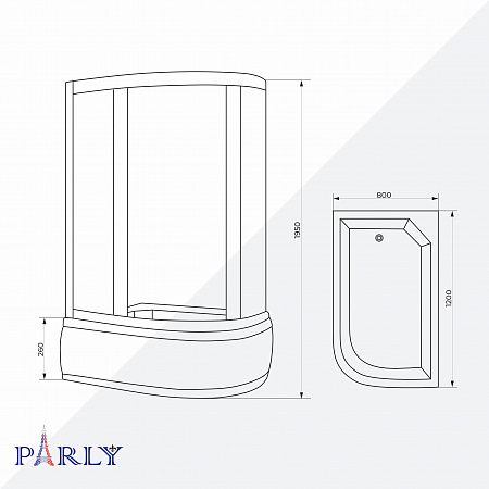 Душевой уголок с поддоном PARLY ZFM1201B L (120х80х195)