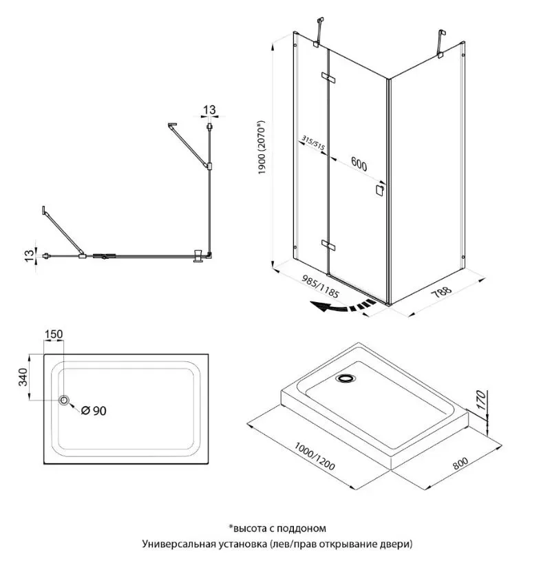 Душевой уголок Triton Брава Щ0000054195 120x80 см профиль хром стекло прозрачное