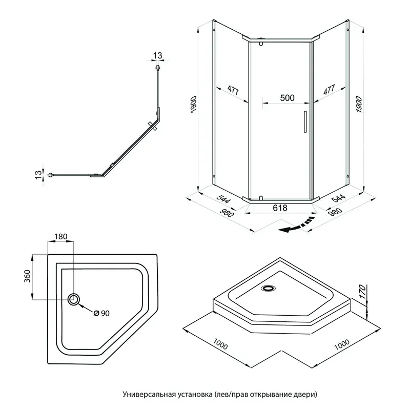 Душевой уголок Triton Дека -Графит Щ0000073930 90x90 см профиль графиит стекло прозрачное купить