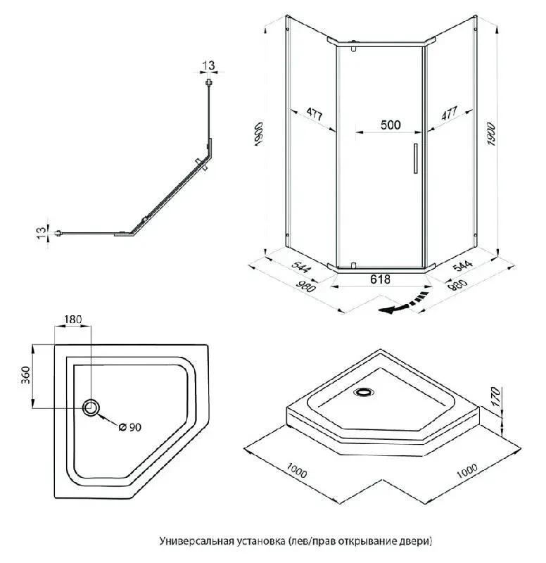 Душевой уголок Triton Дека Щ0000056816 100x100 см профиль хром стекло прозрачное купить