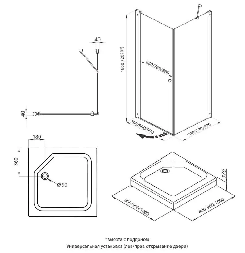 Душевой уголок Triton Форта Щ0000054476 90x90 см профиль хром стекло прозрачное