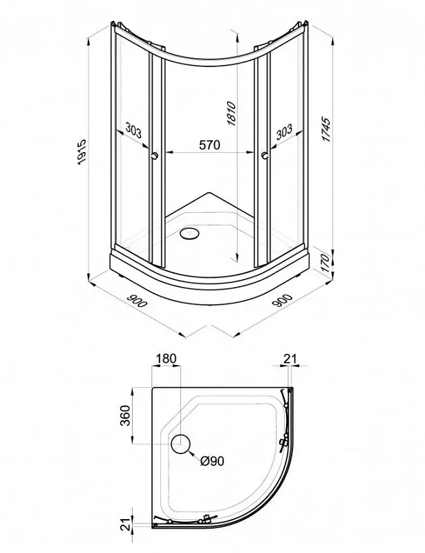 Душевой уголок Triton Грэй Щ0000066464 90x90 см профиль белый стекло тонированное
