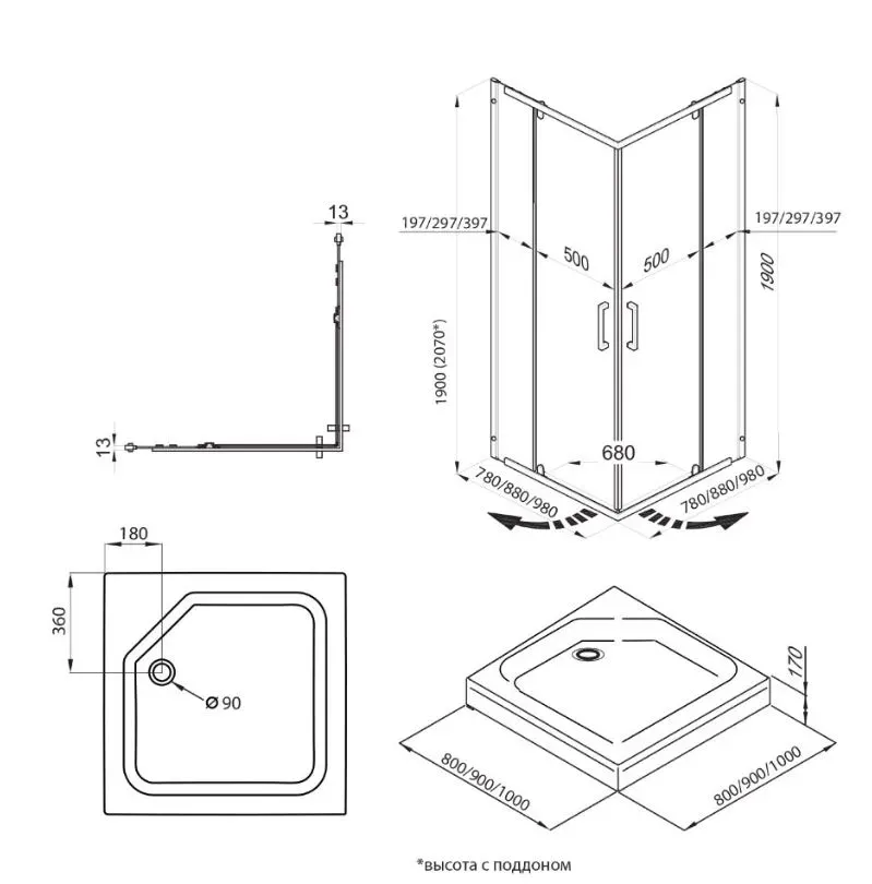 Душевой уголок Triton Каппа Щ0000054220 90x90 см профиль хром стекло прозрачное купить