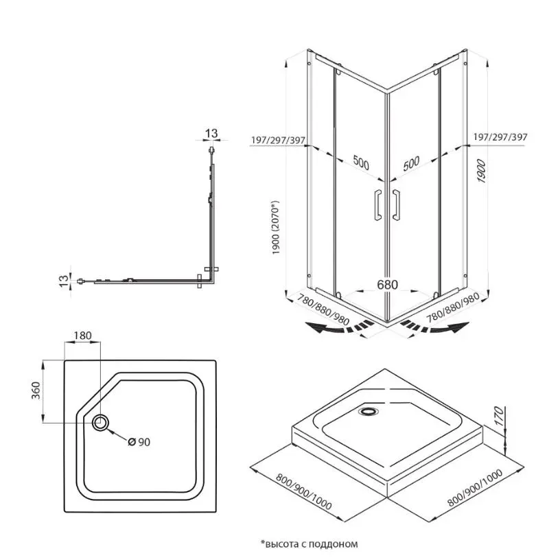 Душевой уголок Triton Каппа Щ0000054221 90x90 см профиль хром стекло прозрачное