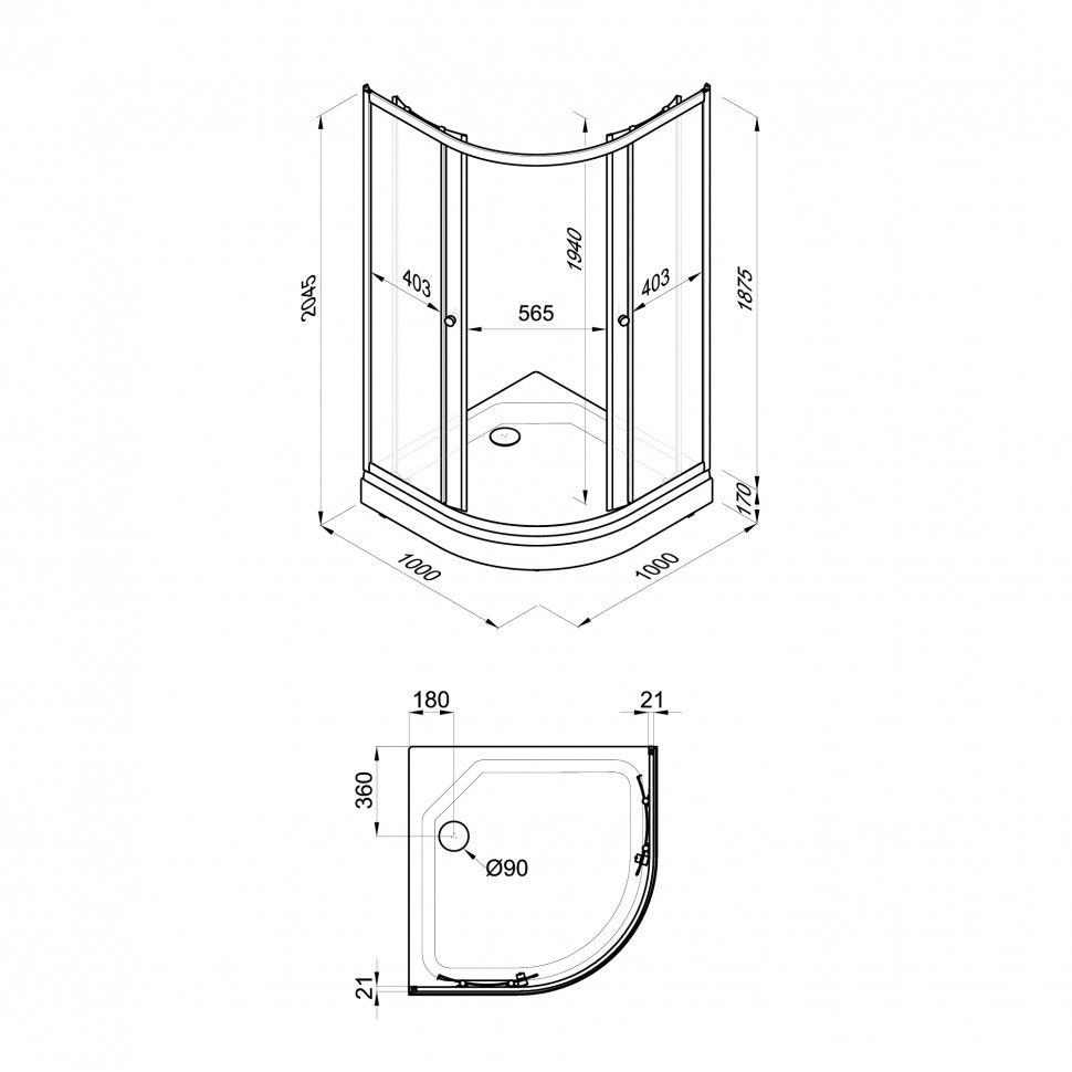 Душевой уголок Triton Лайт Щ0000061794 100x100 см профиль белый стекло с узором