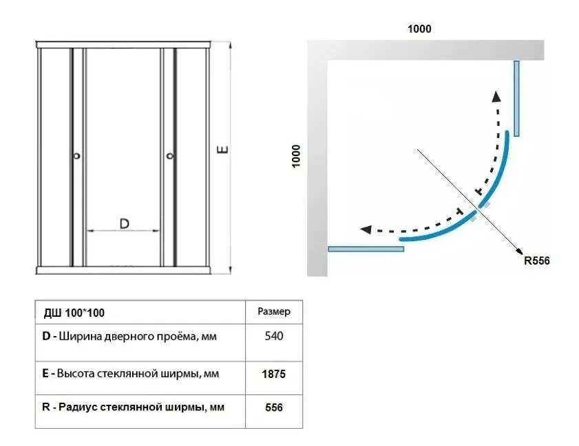 Размер: 100 x 100 x 187.5 см