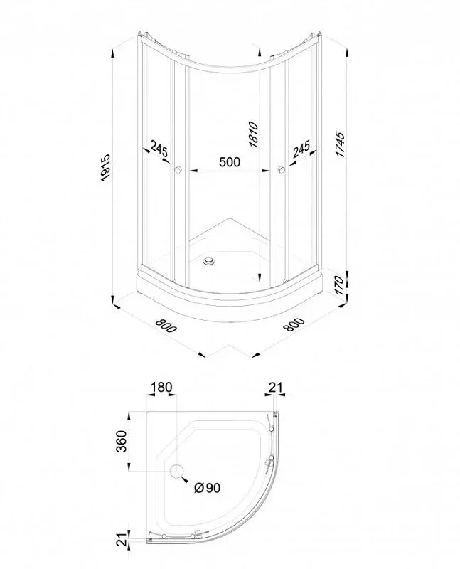 Высота с поддоном: 191.5 см